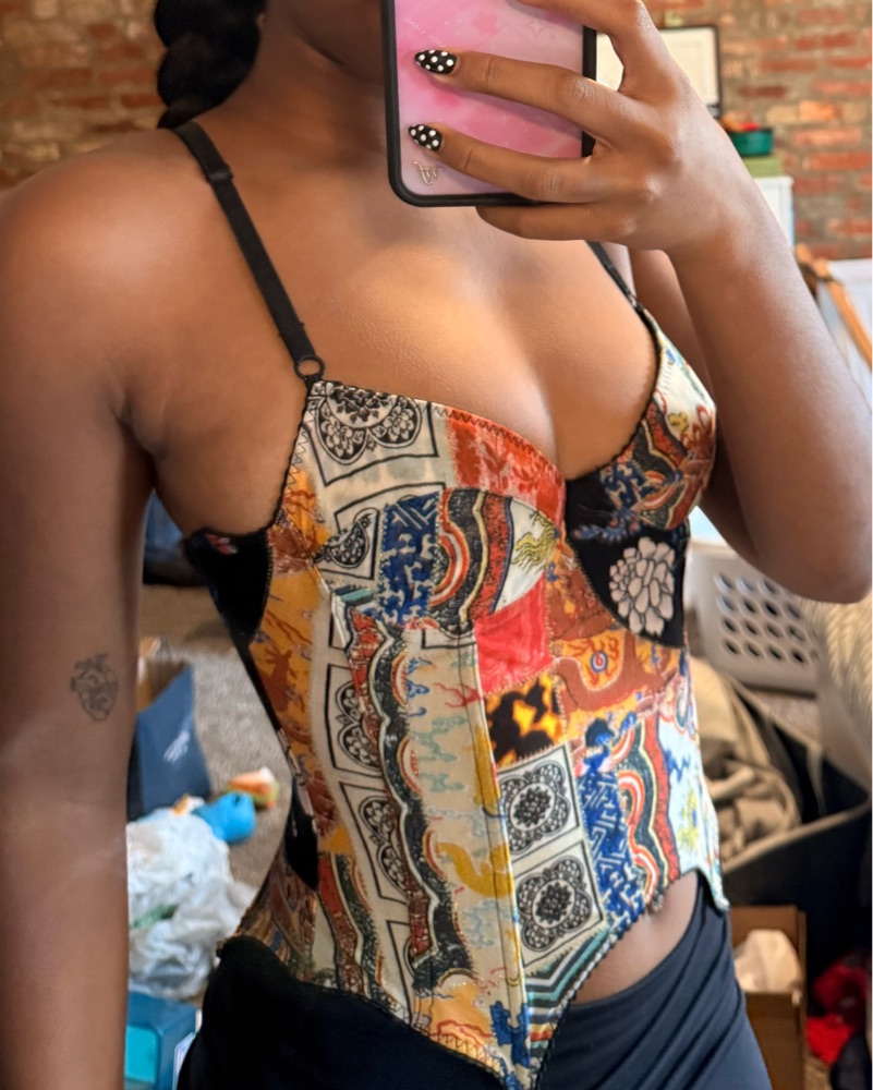 Adjustable Corset top. Size 40 fits a XS/S I would say. Please do not wash when renting.
