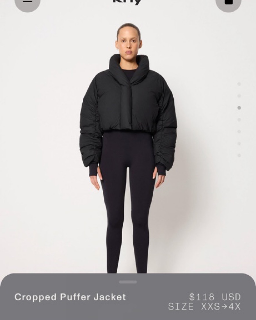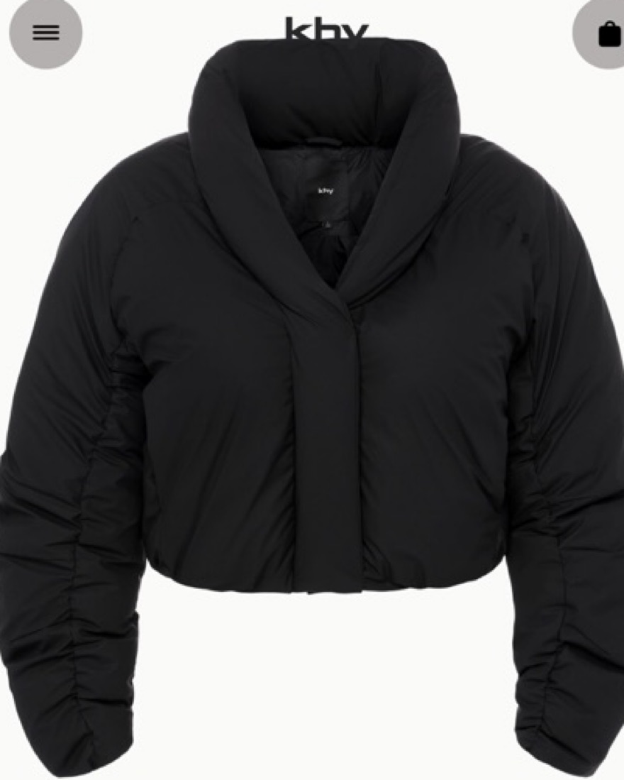 This stylish cropped puffer jacket is perfect for layering and adds a touch of edgy elegance to any outfit.