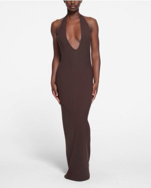 Skims Deep Plunge Brown Dress
