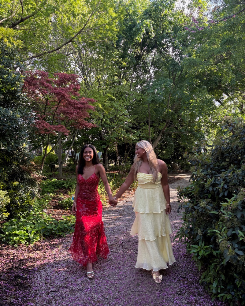RARE DRESS! Only worn once for prom! Sold out on the website. Measurements: waist 24-25”, bust 32”, length would fit 5’4-5’7 in heels. Im normally a 4 and it fits perfectly! I also safety pinned the second layer of the dress at prom because I didn’t want to step on it.