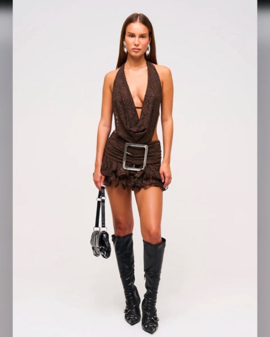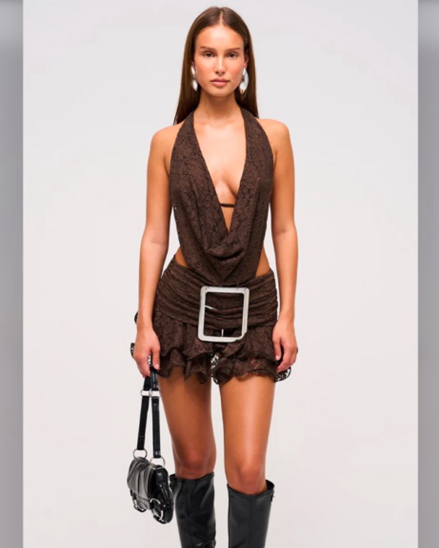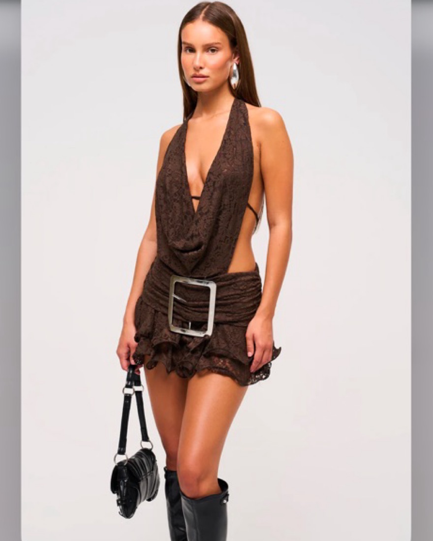 Lace cowl buckle mini dress size UK 8 - US 4 - XS/S