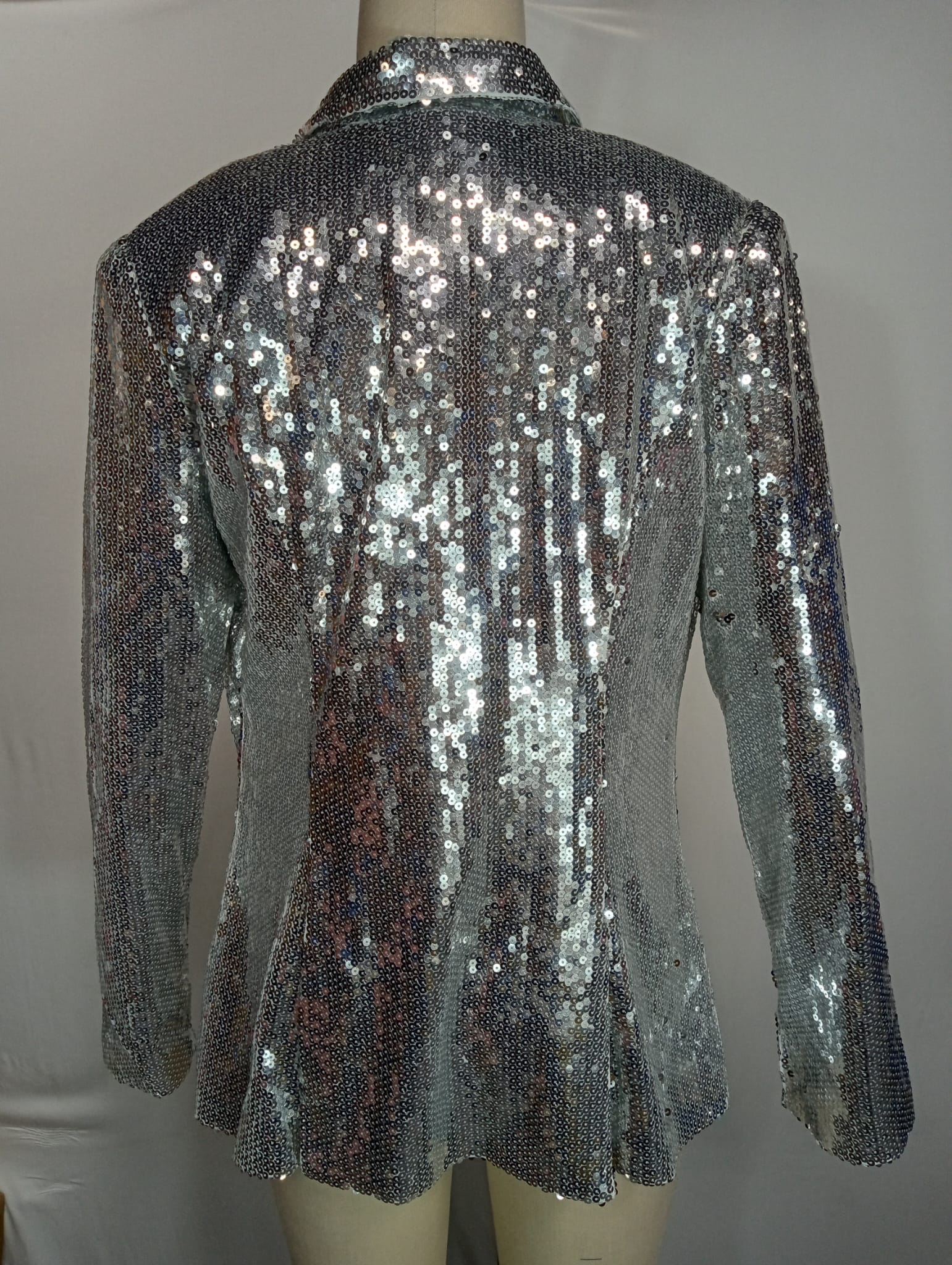 Shine bright at your next party or special event. This dazzling sequin jacket adds instant glamour to any outfit.