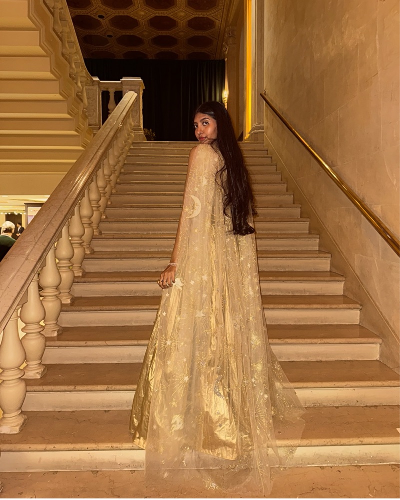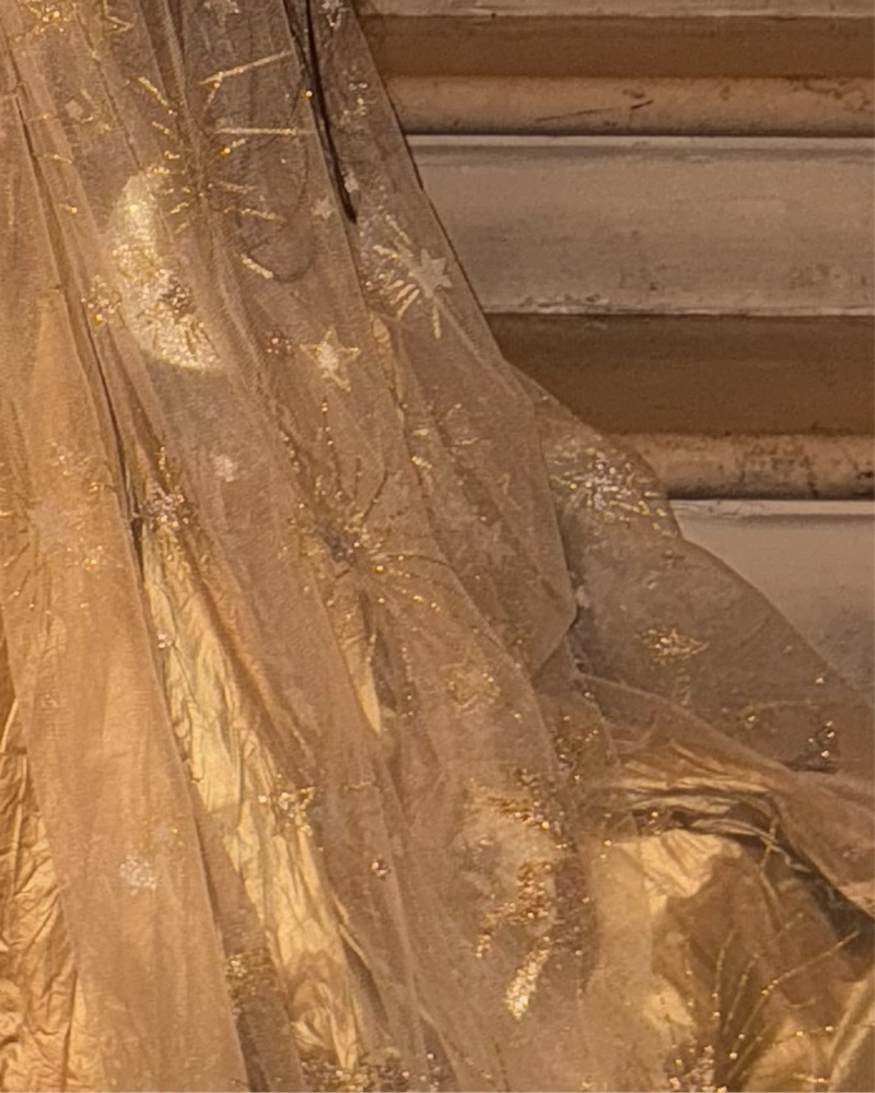 This stunning gold cape is perfect for a formal event or red carpet occasion. The intricate celestial-inspired embellishments add a touch of magic and whimsy. one size fits all