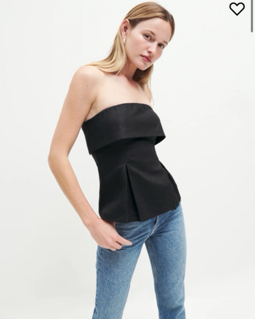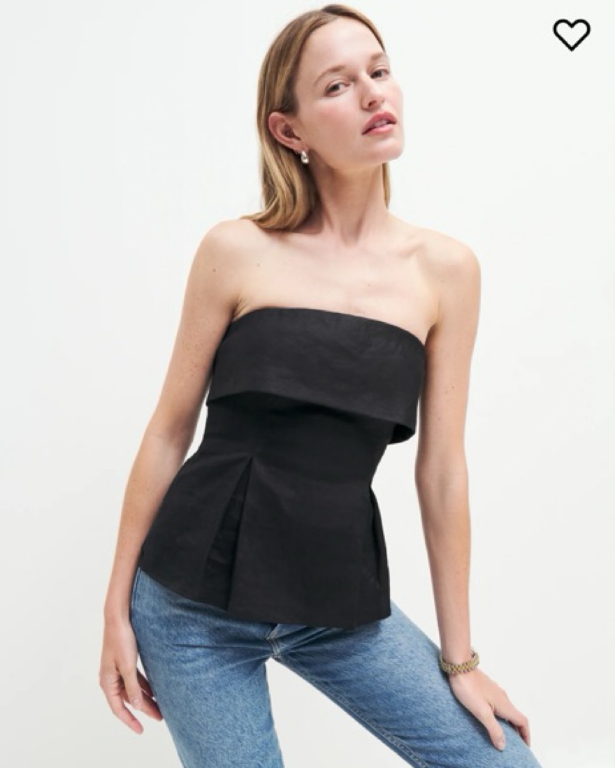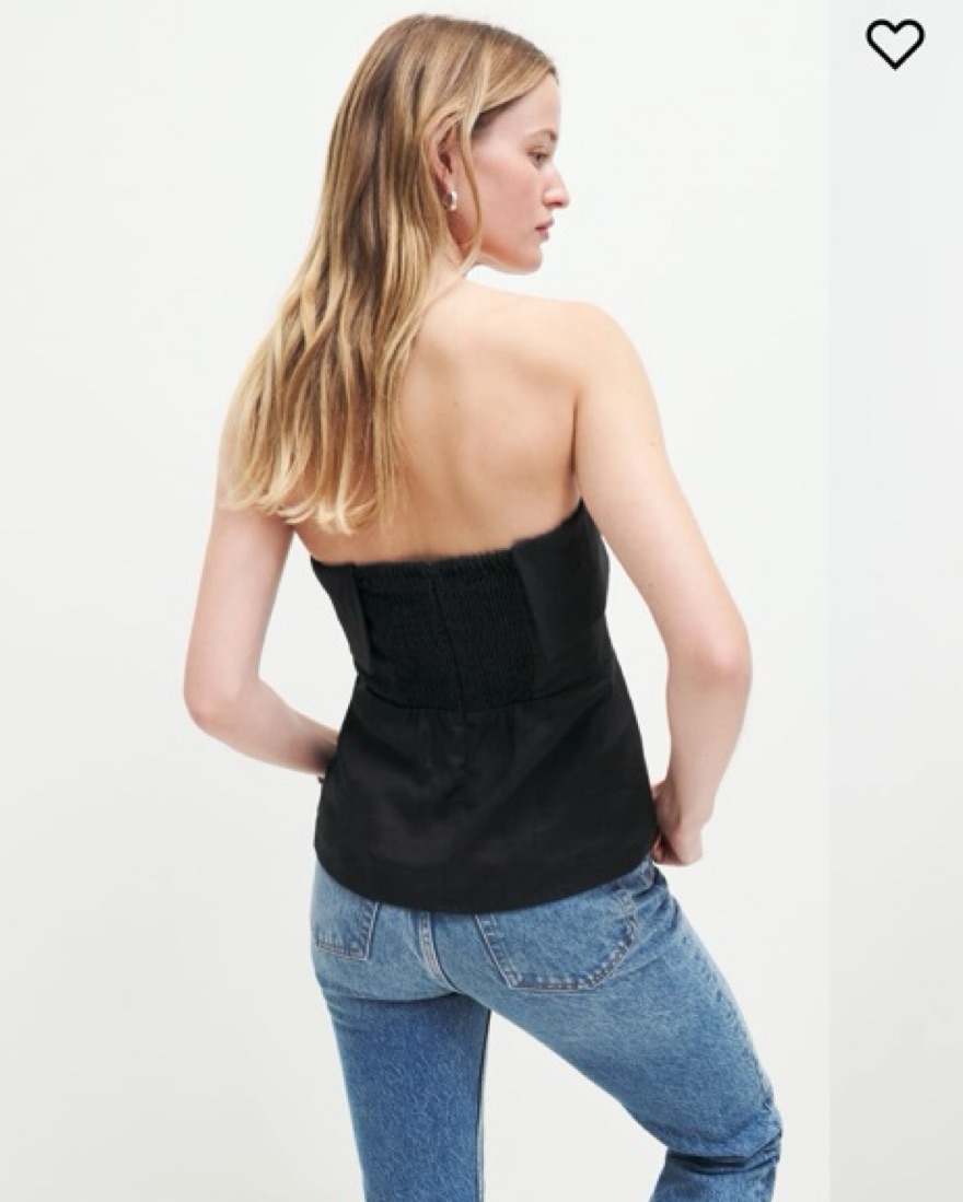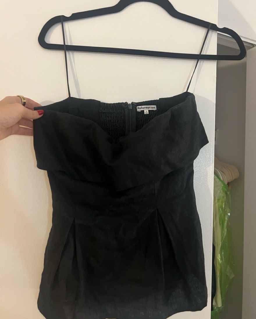 Reformation Black Linen Strapless Top