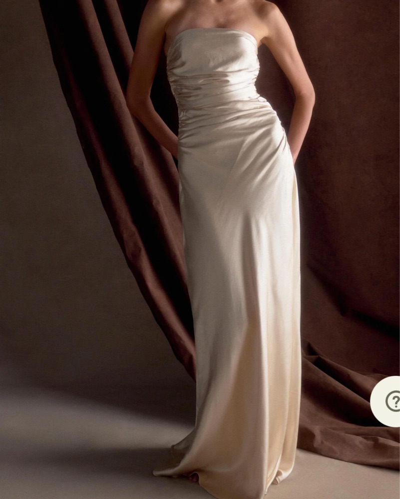 2x so perfect for bridesmaids strapless satin gown is perfect for a formal evening event. The fitted bodice and flowing maxi silhouette create a flattering, glamorous look. It’s more Champagne