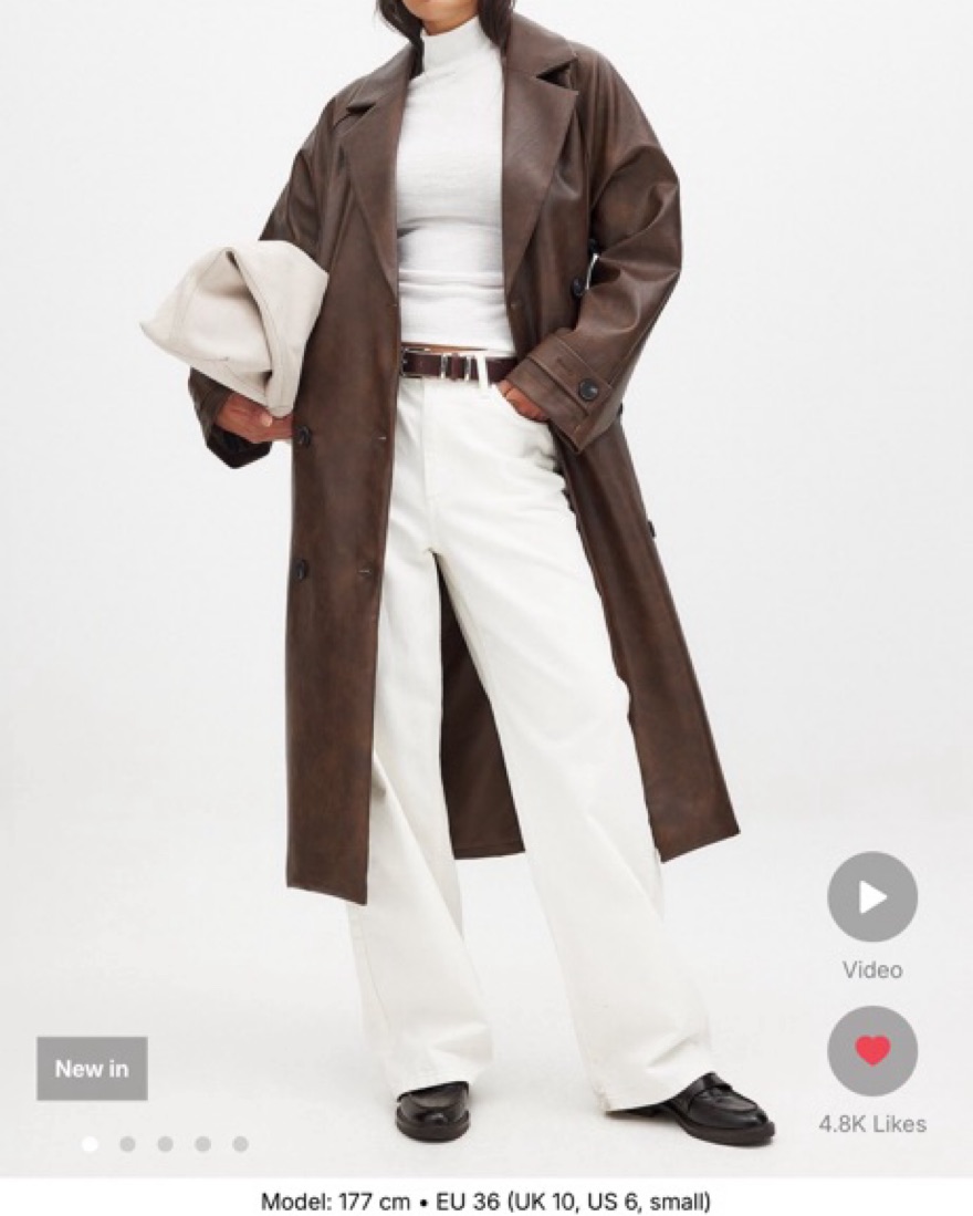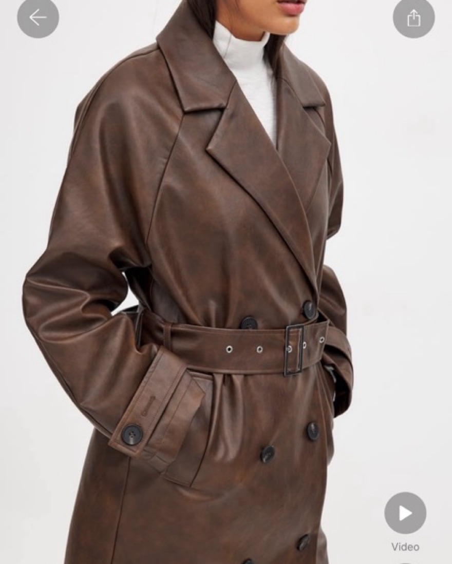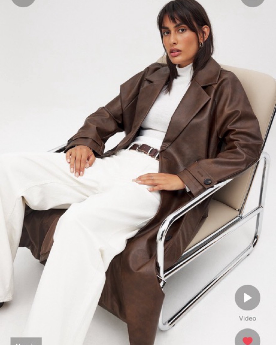 Brown faux Leather Trench Coat by NAKD - Pickle