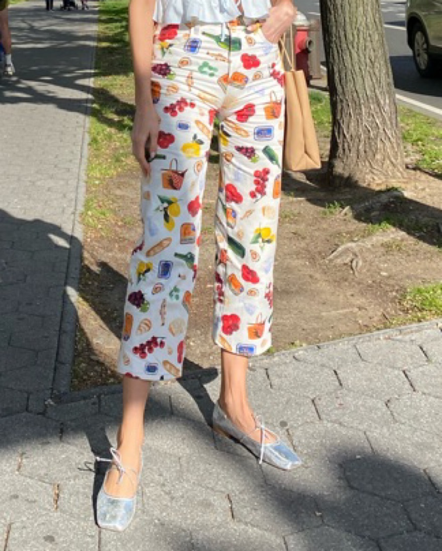 Super cute printed denim pants - great statement piece!