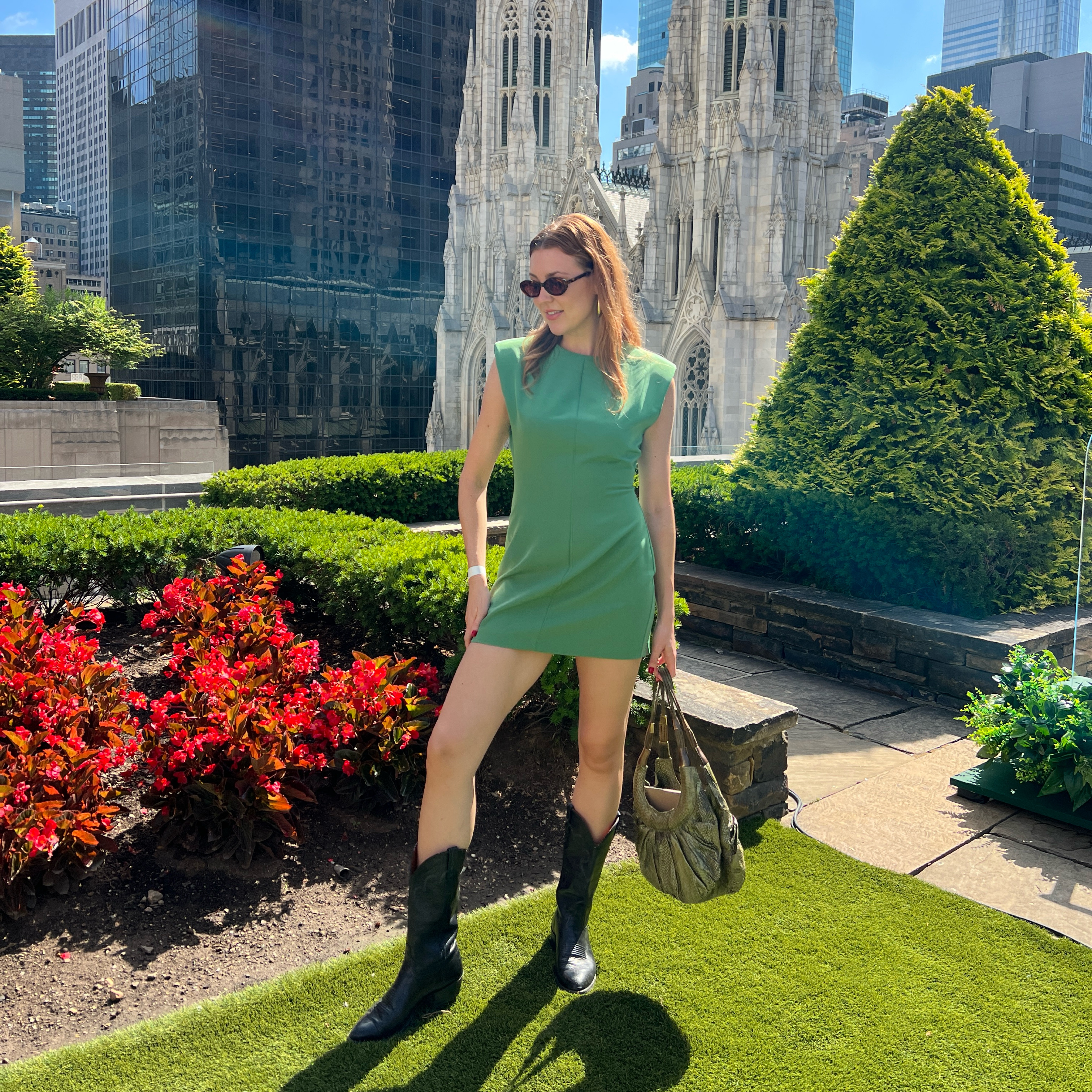 SO flattering with the shoulder pads ans nipped waist I get so many compliments 💚💚 Size M