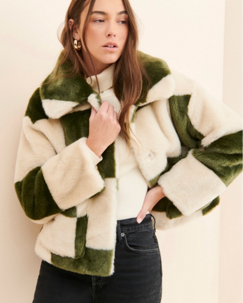 Nuuly Green and White Fur Jacket by Jakke - Pickle