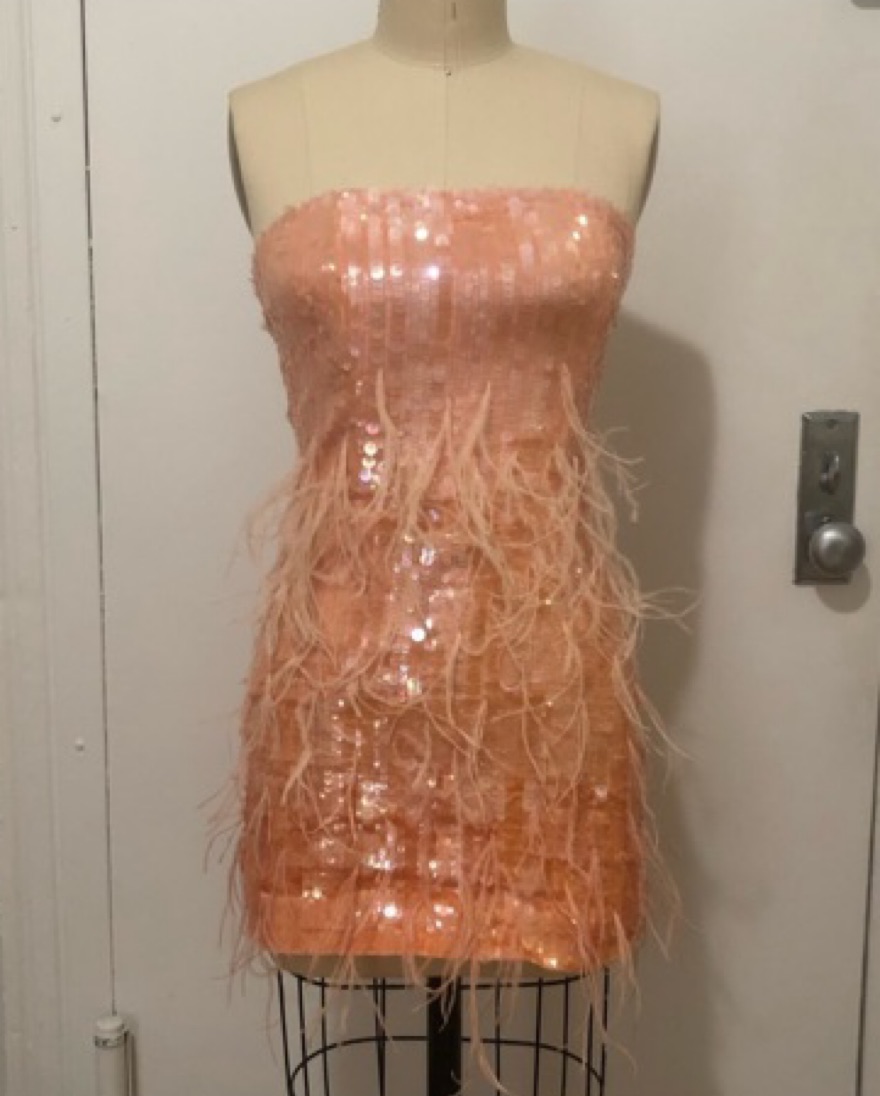 In Bubble Gum Pink, a little bit of sequin fell off by the zipper but it is unnoticeable