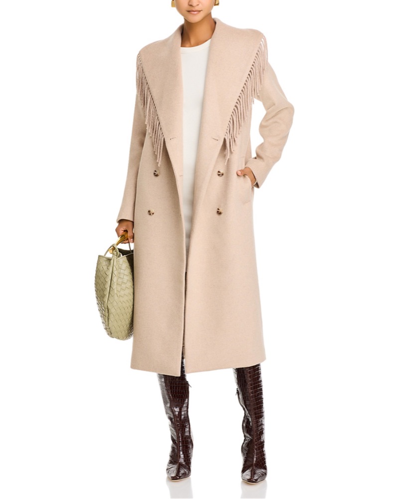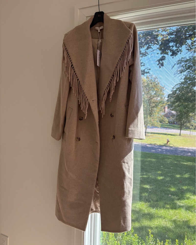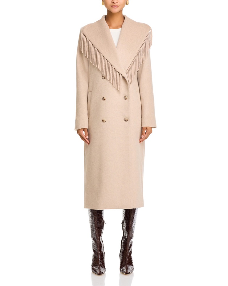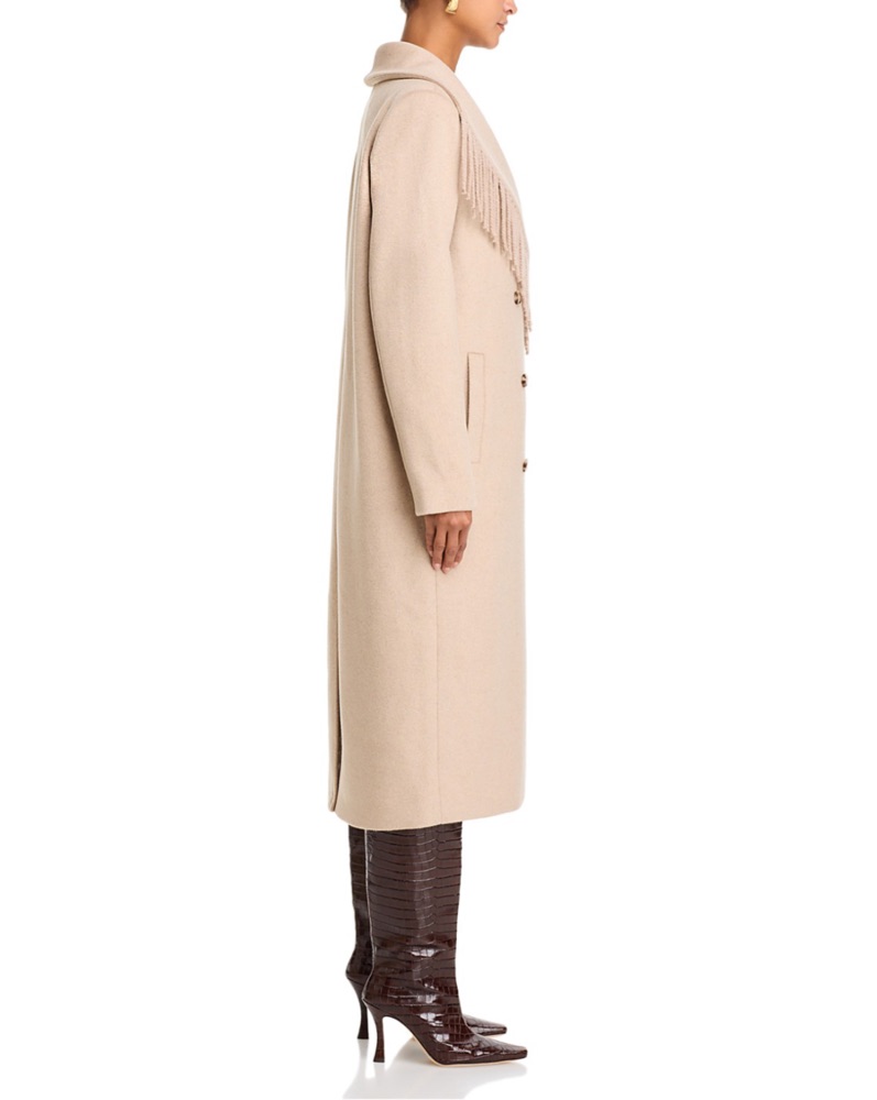 Wayf Beige Greyson Fringe Wool Coat