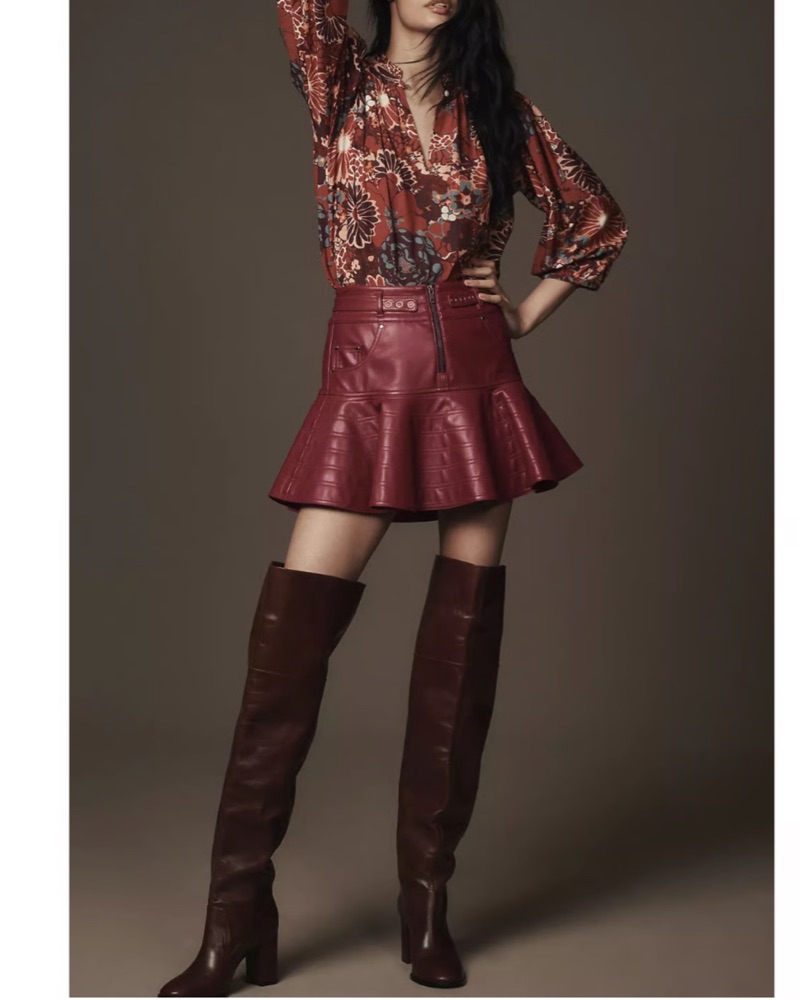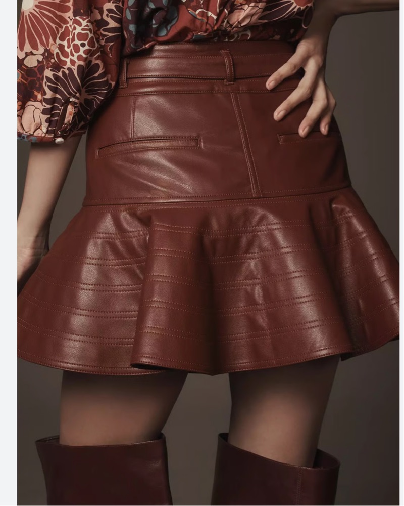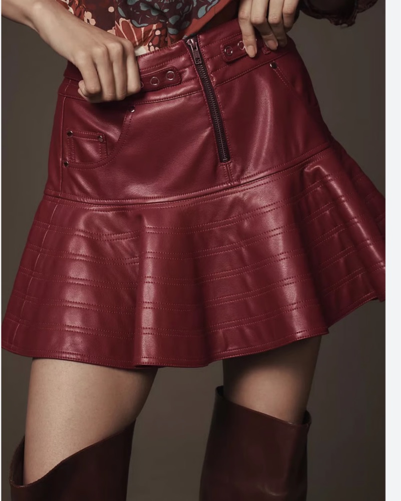 NWT Red Faux Leather Flared Miniskirt by Anthropologie - Pickle