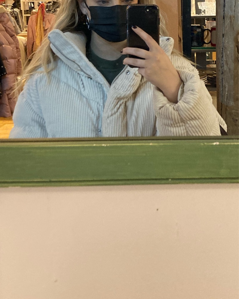 Cream colored super cozy winter puffer keeps you very warm!