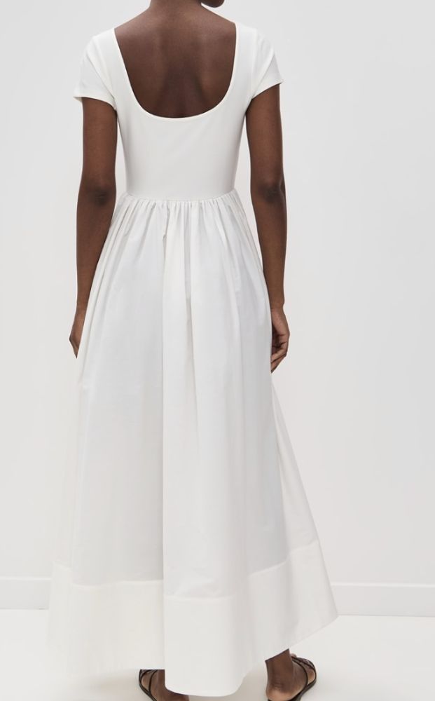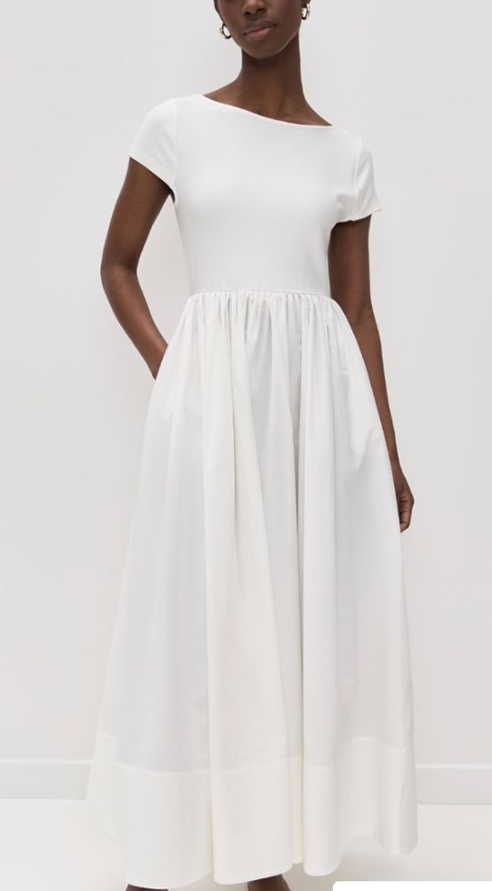 Maxi dress with ribbed knit bodice, boat neck and a scoop back