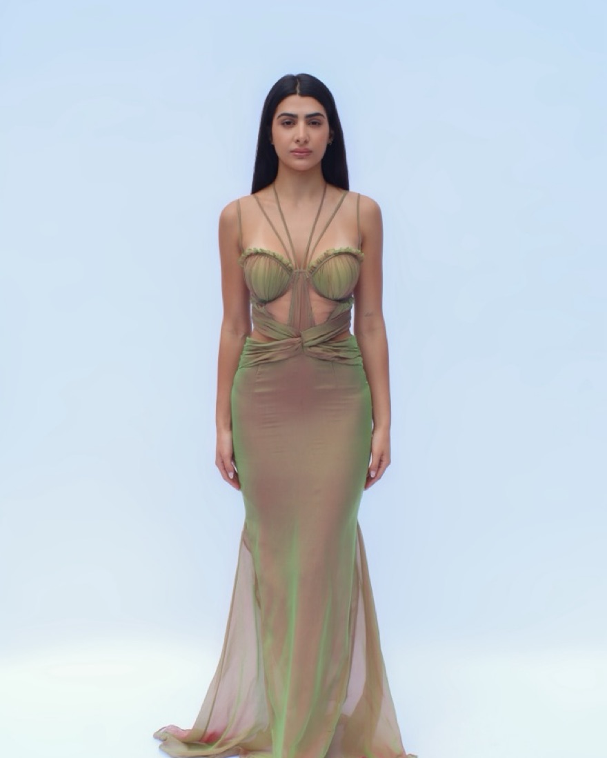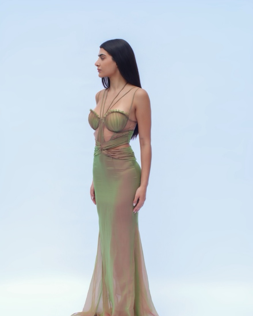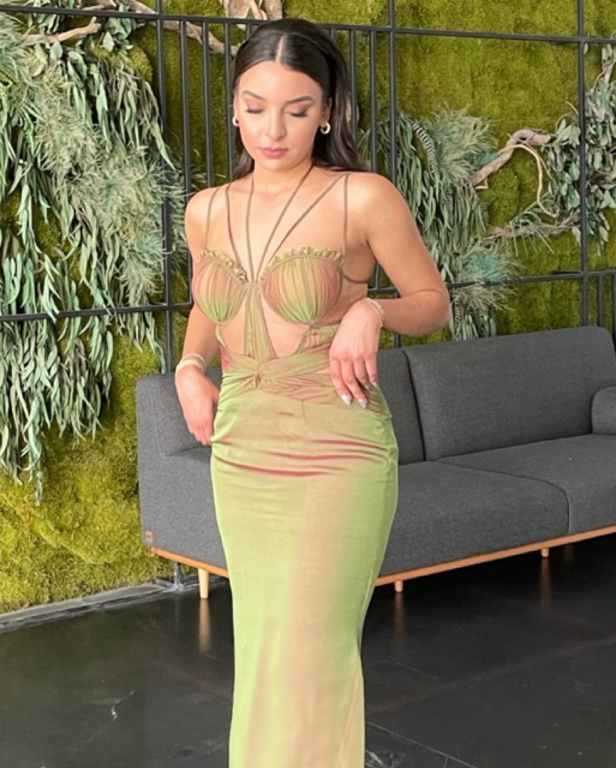 Mermaid 2 Tone Green & Pink Maxi Dress