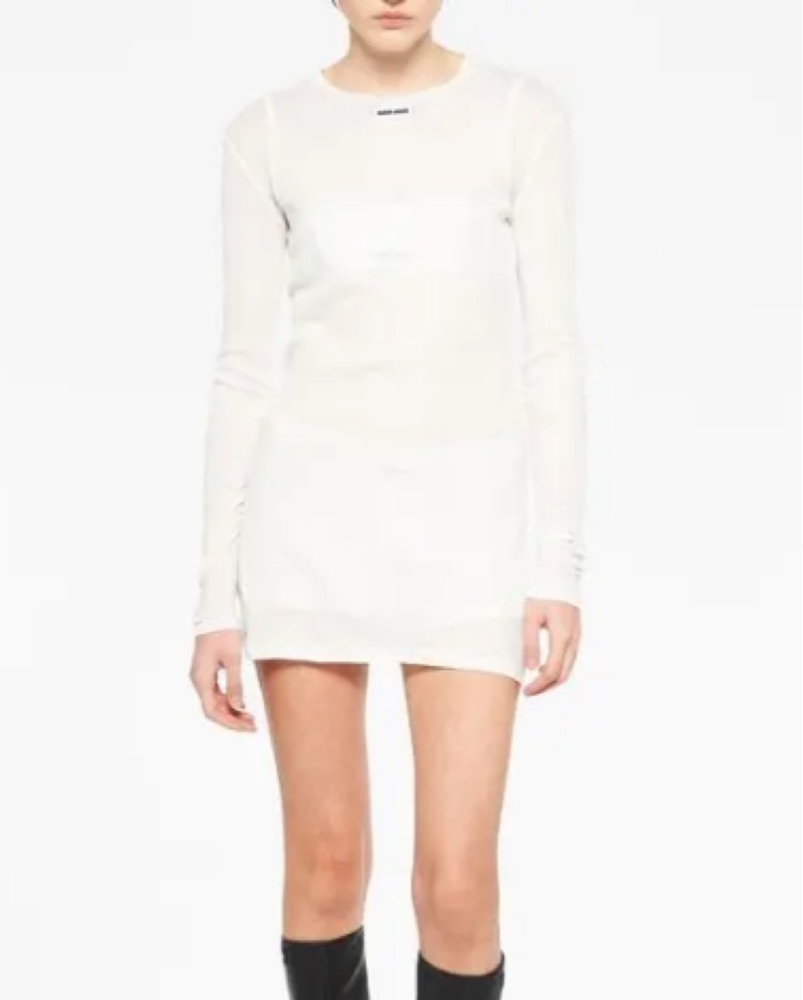 This chic Miu Miu mini dress is perfect for a night out or special occasion. The long sleeves and form-fitting silhouette create a sophisticated yet modern look.
