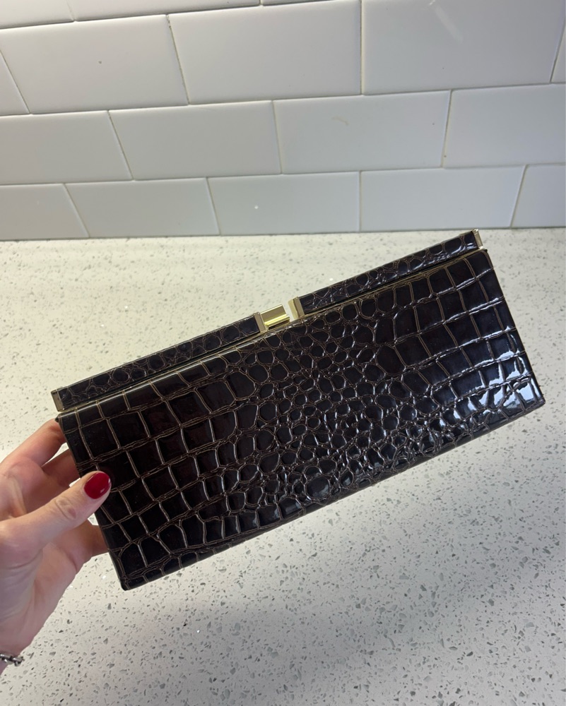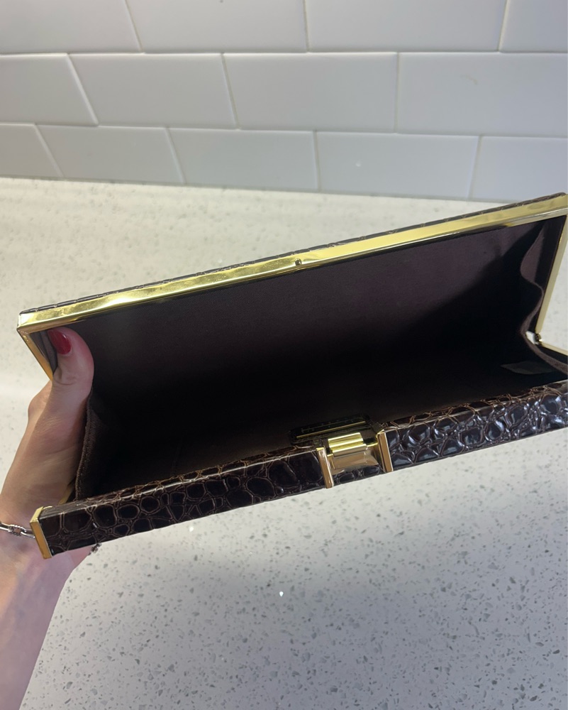 Brown & gold crocodile clutch. Great for any formal event & goes with almost everything