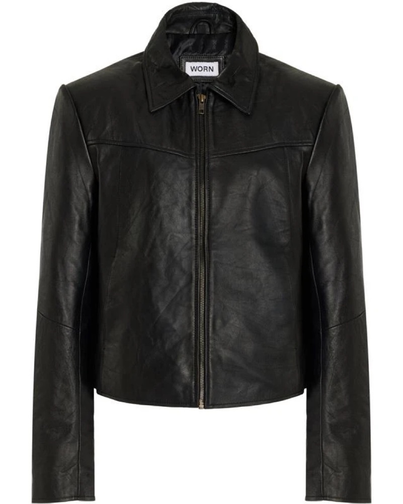 This classic black leather jacket exudes effortless style. Pair it with your favorite jeans and boots for a versatile look that can be dressed up or down.