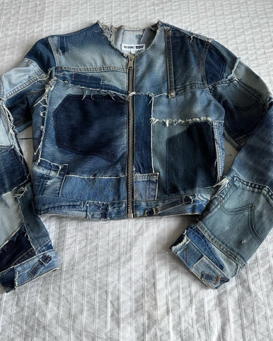 Redone Patchwork Denim Jacket by REDONE - Pickle
