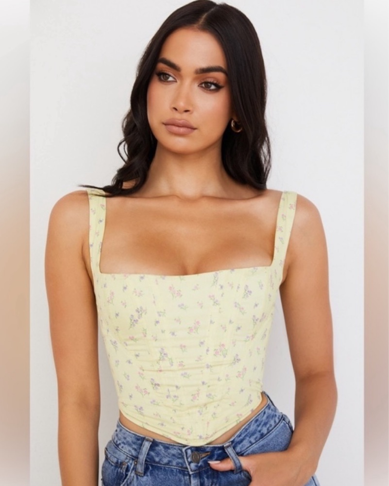 House Of CB Poppy Lemon Floral Corset by House of CB - Pickle