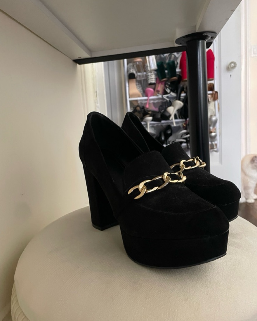 These stylish platform pumps are perfect for adding a touch of glamour to any outfit. Wear them to a night out for a sophisticated look.
