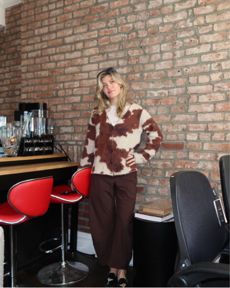 Jaded London Cow Chuck Cardigan in cow print