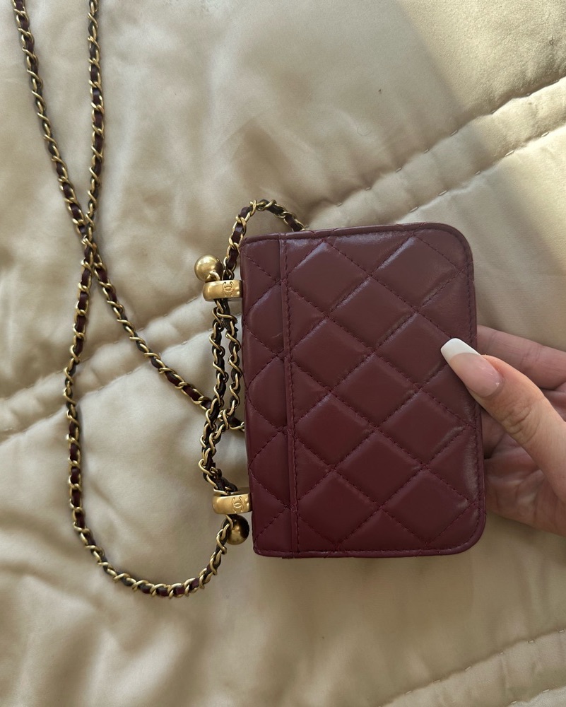 Burgundy Mini Wallet On A Chain by Chanel - Pickle
