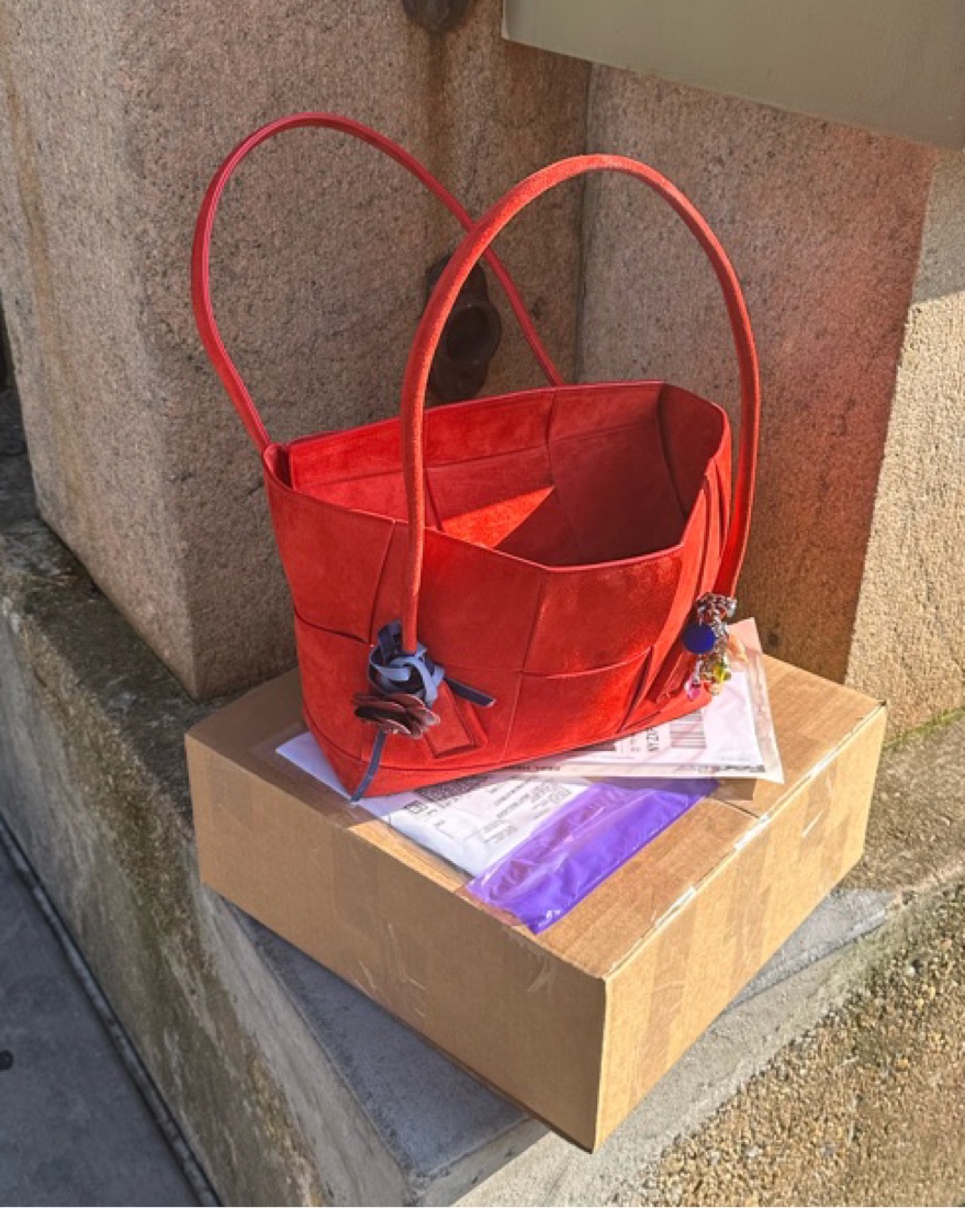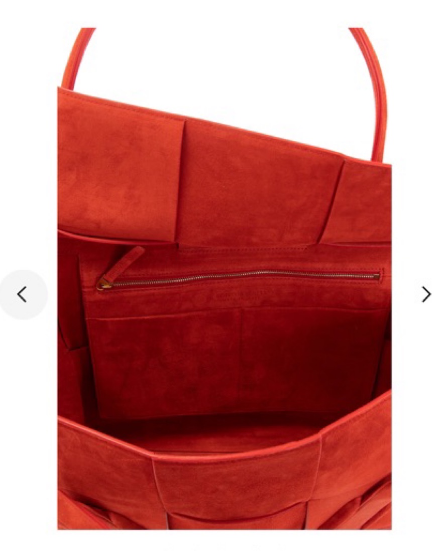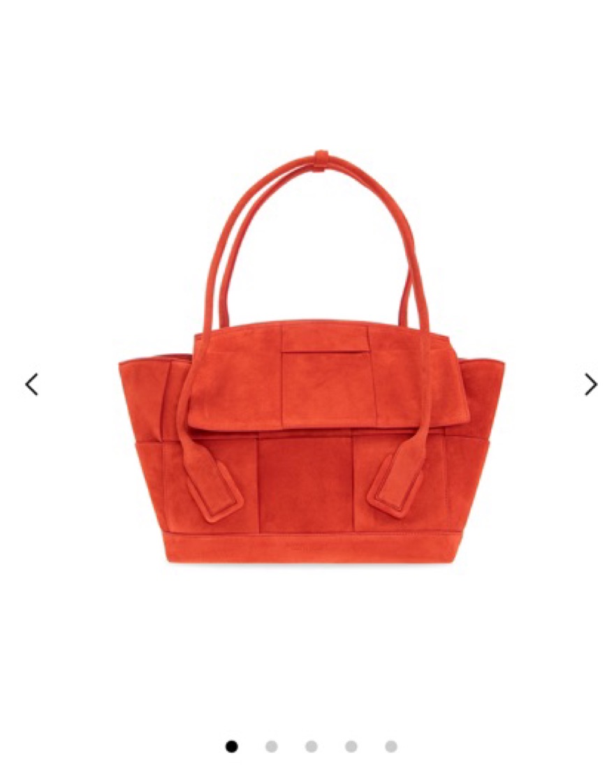 BV arco suede tote bag in blood orange color. Can hold an average size laptop, has a few scuff marks on the front. Happy to send photos of the markings but theyre not vey noticable!
