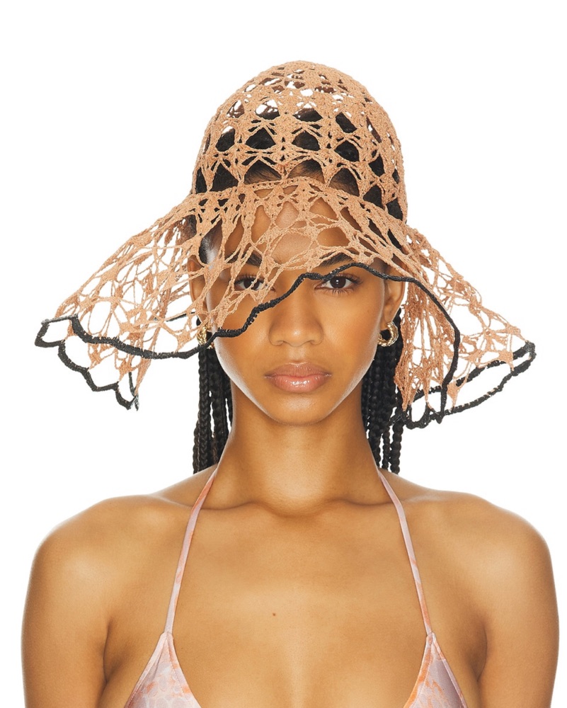 100% cotton • Made in Jamaica • Open crochet fabric • Brim measures approx 6" in length Size S measures approx 20.41" in circumference