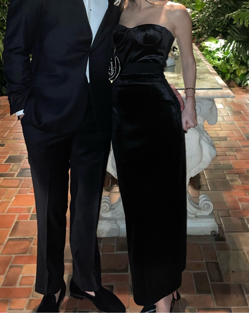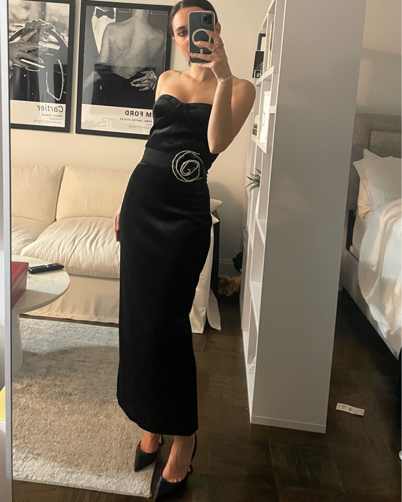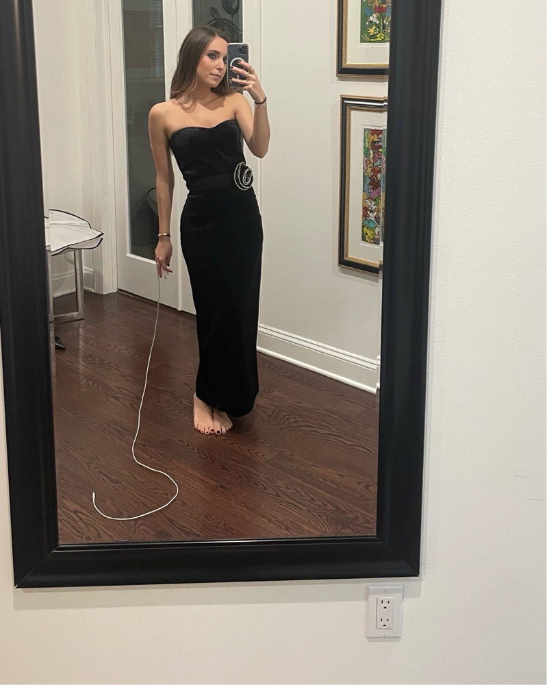 The new arrivals black velvet midi dress with a beautiful flower belt