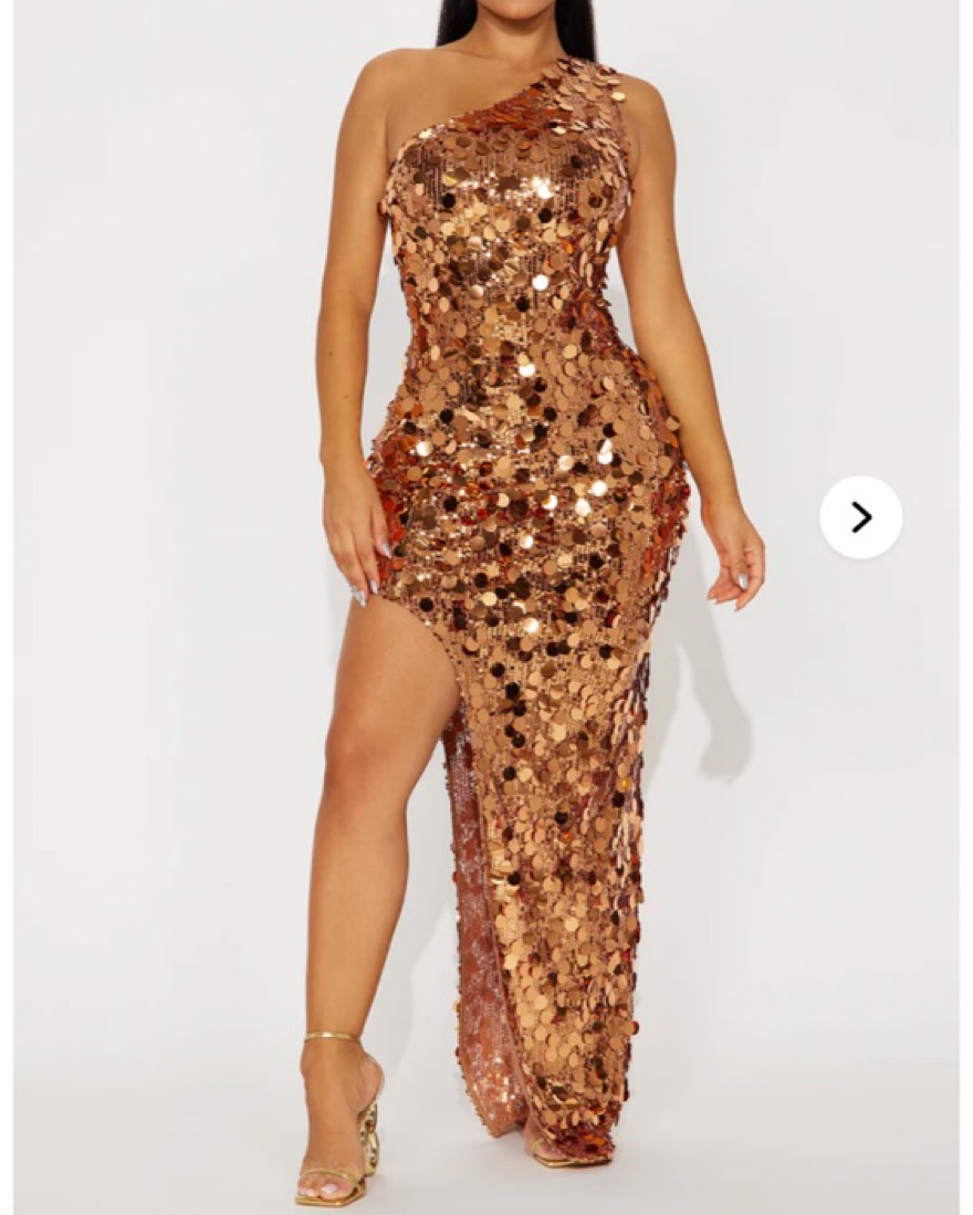 Irresistable Charm Gold Maxi Dress (XS) by Fashion Nova - Pickle
