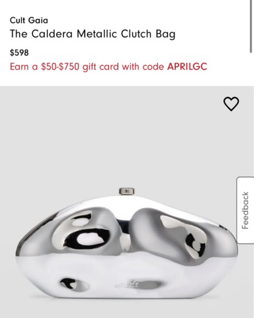 This Cult Gaia Caldera Silver-Tone Clutch is a striking and versatile accessory. Its metallic finish makes it perfect for elevating any evening look. Perfect wedding clutch (AI generated description)