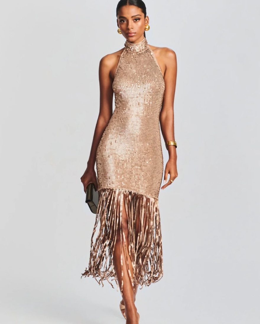 Renzo Dress in Metallic Tannin. Perfect for an blade tie event, weddings or parties. Would also fit size S