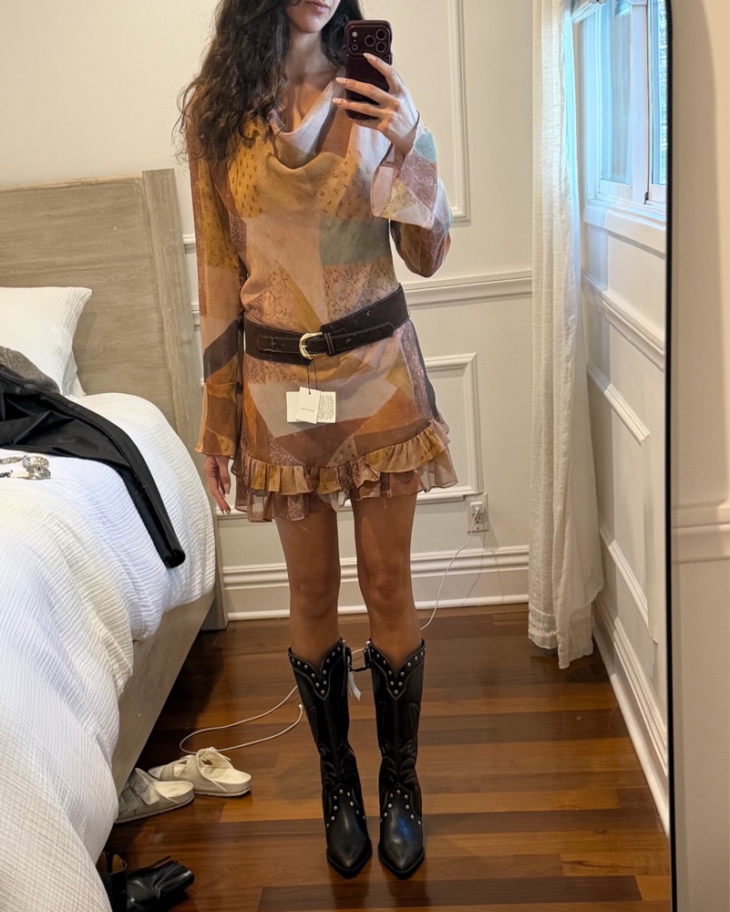 Dark brown studded boots. Very comfy. Note - Zippers are on the outer side of legs. I typically wear an 8.5 or 9.