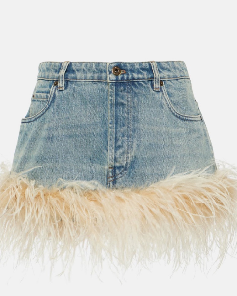Miu Miu Feather Trim Mini Skirt
