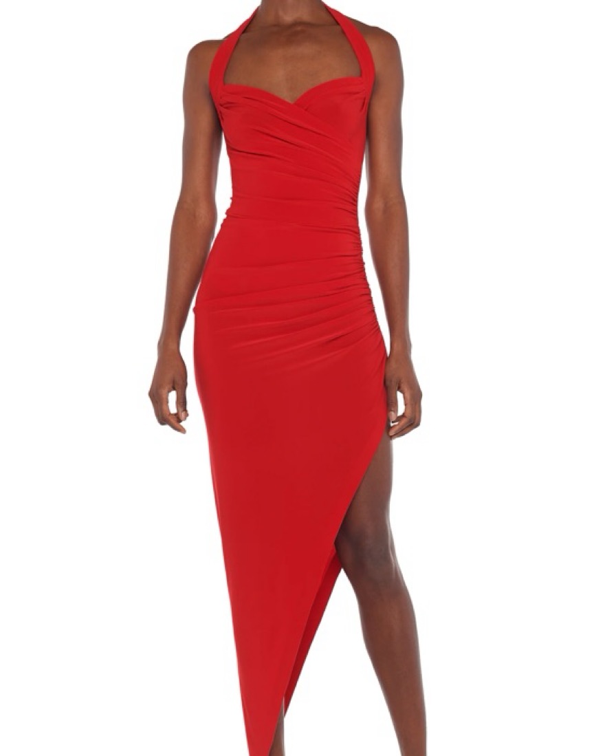 Halter-style red norma kamali midi dress. SO flattering. NWT.