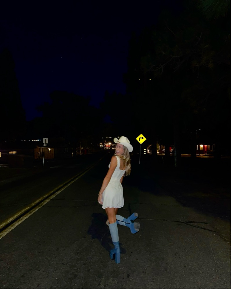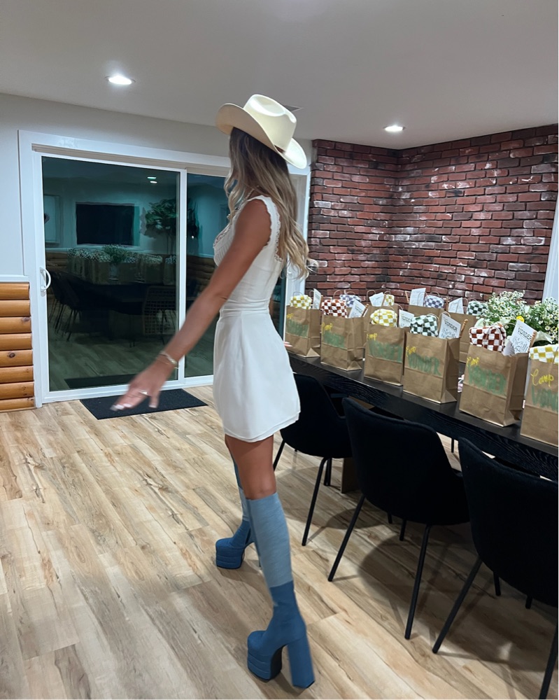 The Talk Of The Town knee-high platform boots are perfect for a country-inspired or chic event. They give a lot of height but are incredibly comfortable to walk in.