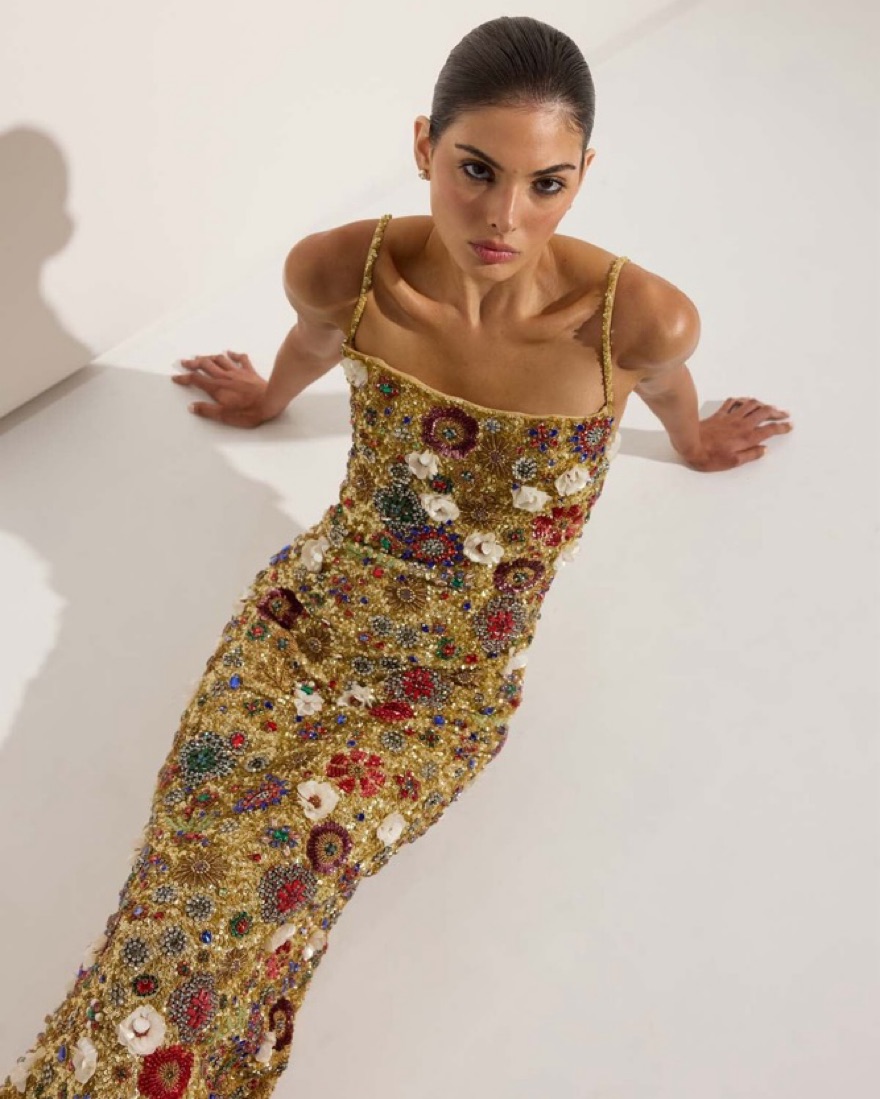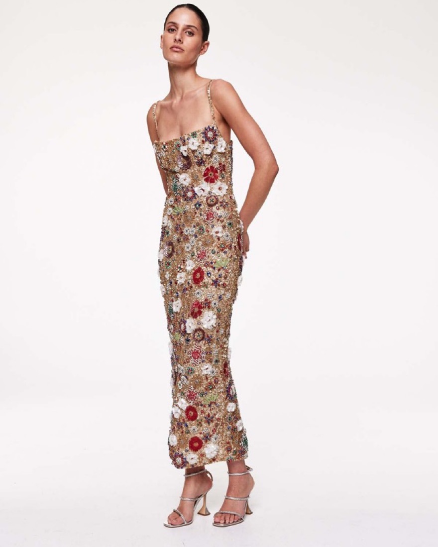 The most glamorous dress! US 4/AU 1. True to size with stretch (fits variety of sizes -see review photos). Please handle w care! Extremely delicate. Tags: gold dress, sequins, sparkles, Christmas dress, holiday dress, birthday dress, holiday party, gala cocktail
