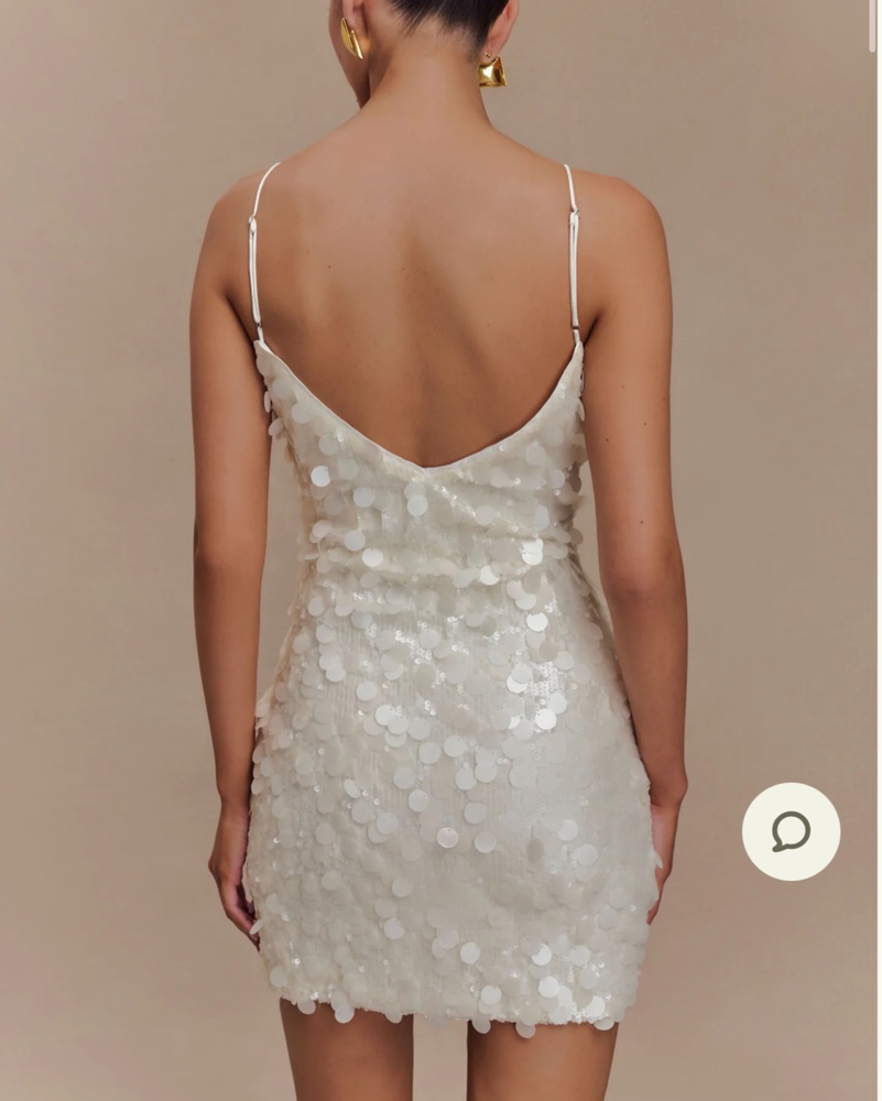 Romilly Sequin Mini Dress - Ivory by Meshki - Pickle