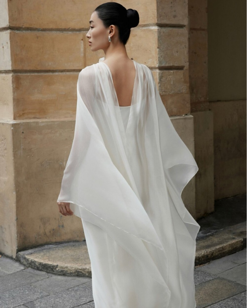 Gorgeous cape dress perfect for bridal, vacay, etc. please be careful as it’s delicate!