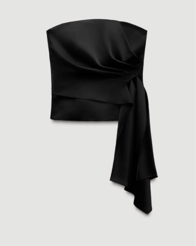 Zara Pleated Satin Strapless Top by ZARA - Pickle