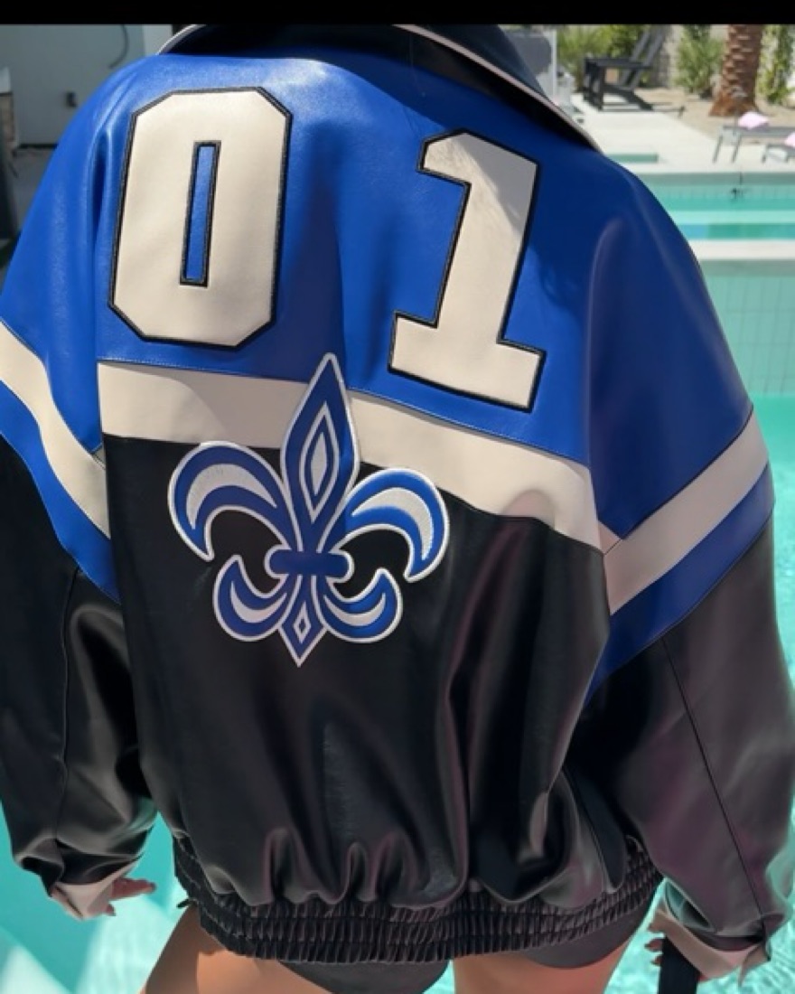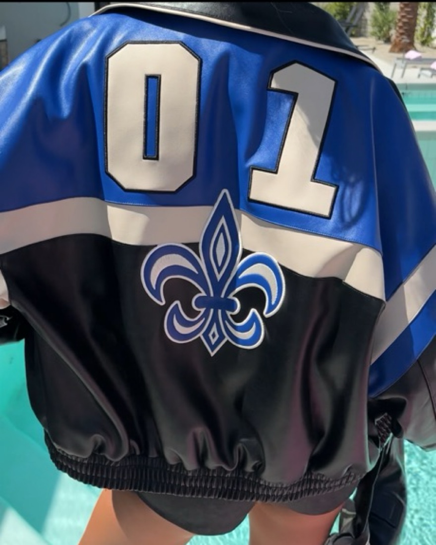 NWT Miss Me Faux leather varsity bomber jacket in black/blue size Medium
