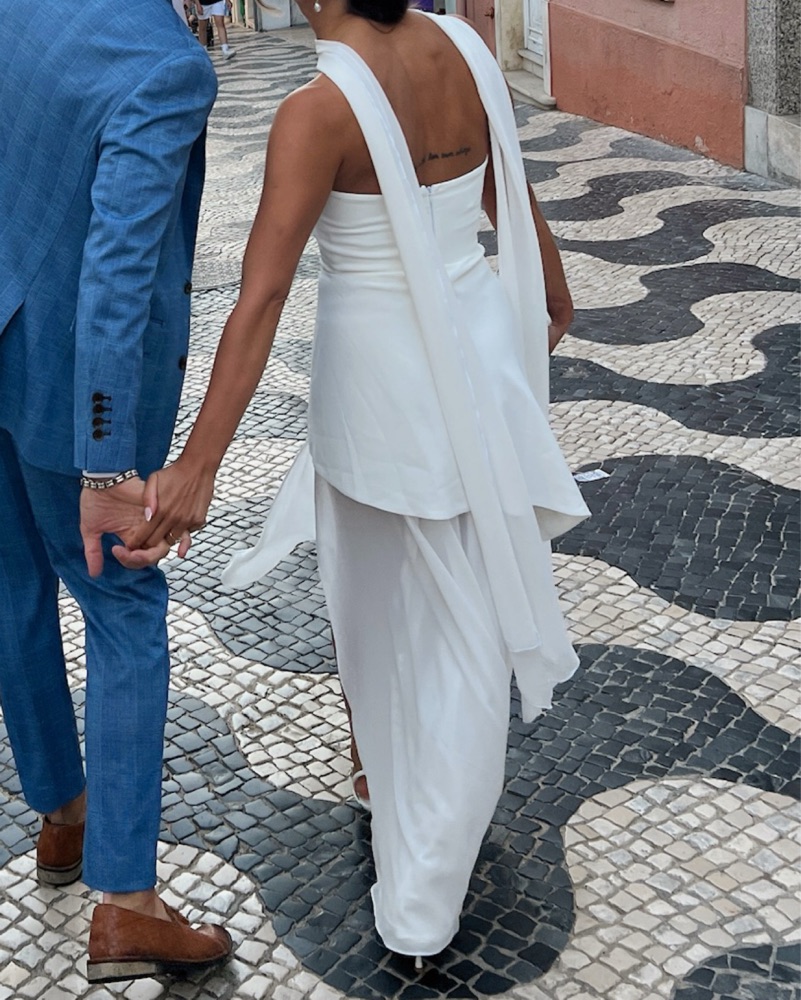 Note: Hemmed to work for me in 2 in heels (I’m 5’ 4”— see last 2 pics for reference) Worn once for wedding welcome party!