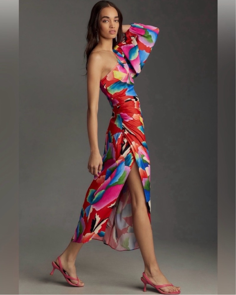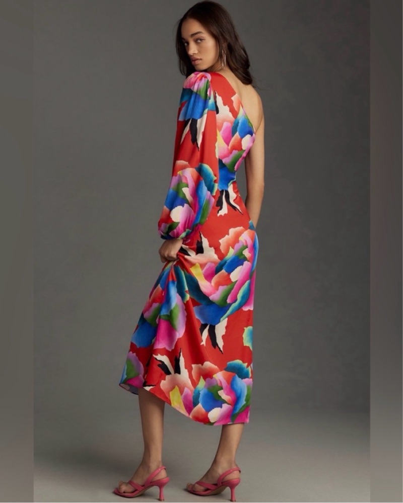 Farm Rio One Shoulder Slim Floral Midi Dress size small. Worn once
