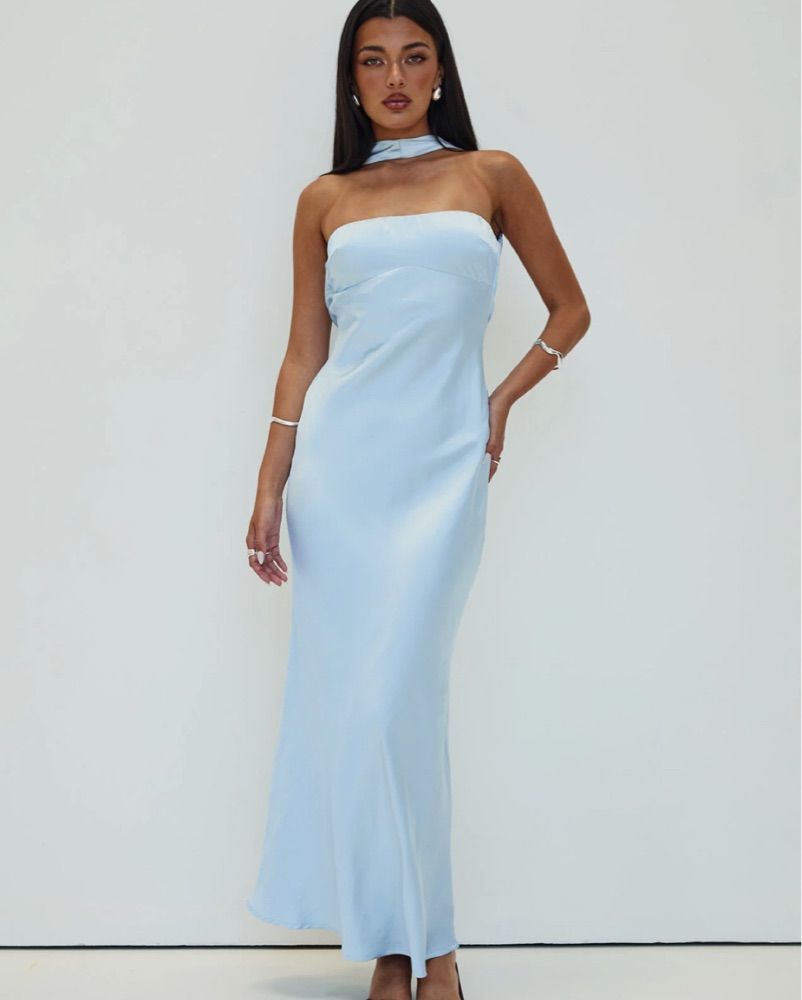 Icy Blue Strapless Maxi Dress