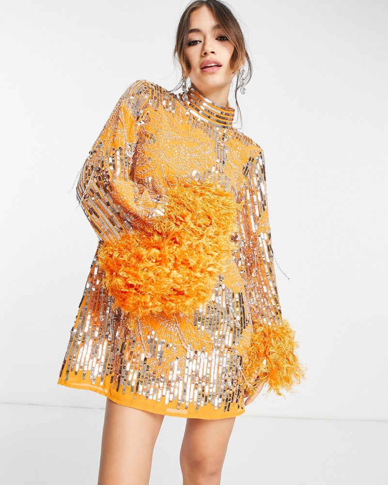 ASOS Orange Feather Dress by ASOS Edition - Pickle