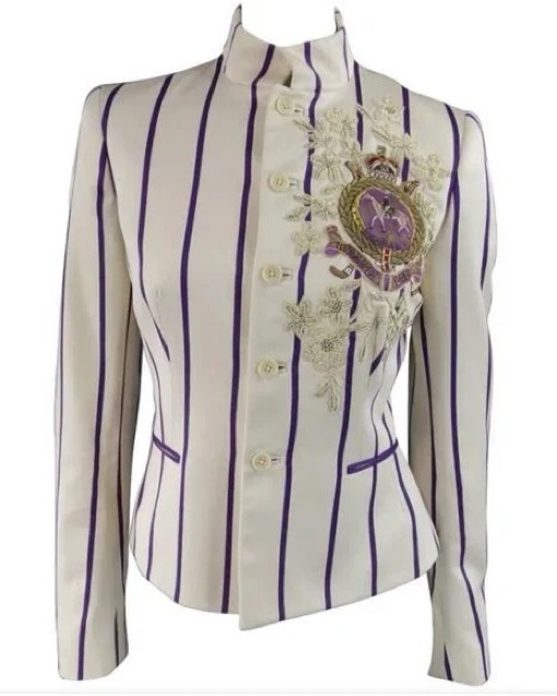 Ralph Lauren Collection blazer from Spring Summer 2008. As seen on Blake Lively / Serena van der Woodsen on Gossip Girl Season 2 episode 6 New Haven Can Wait. Runs small (marked an 8) fits like a Us 4. 15 inches shoulder, 34 inches bust.