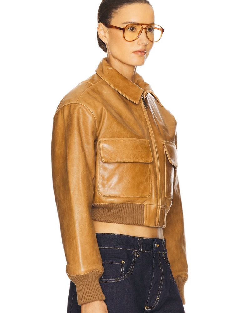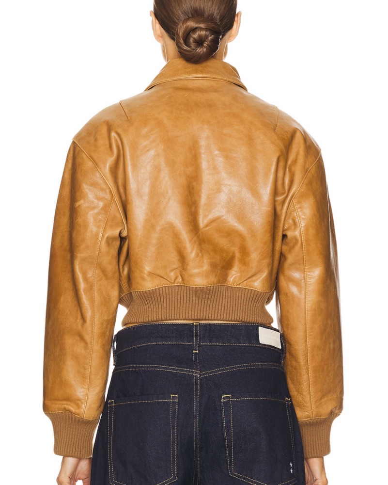 Helsa Leather Bomber Jacket Saddle Brown by Helsa - Pickle
