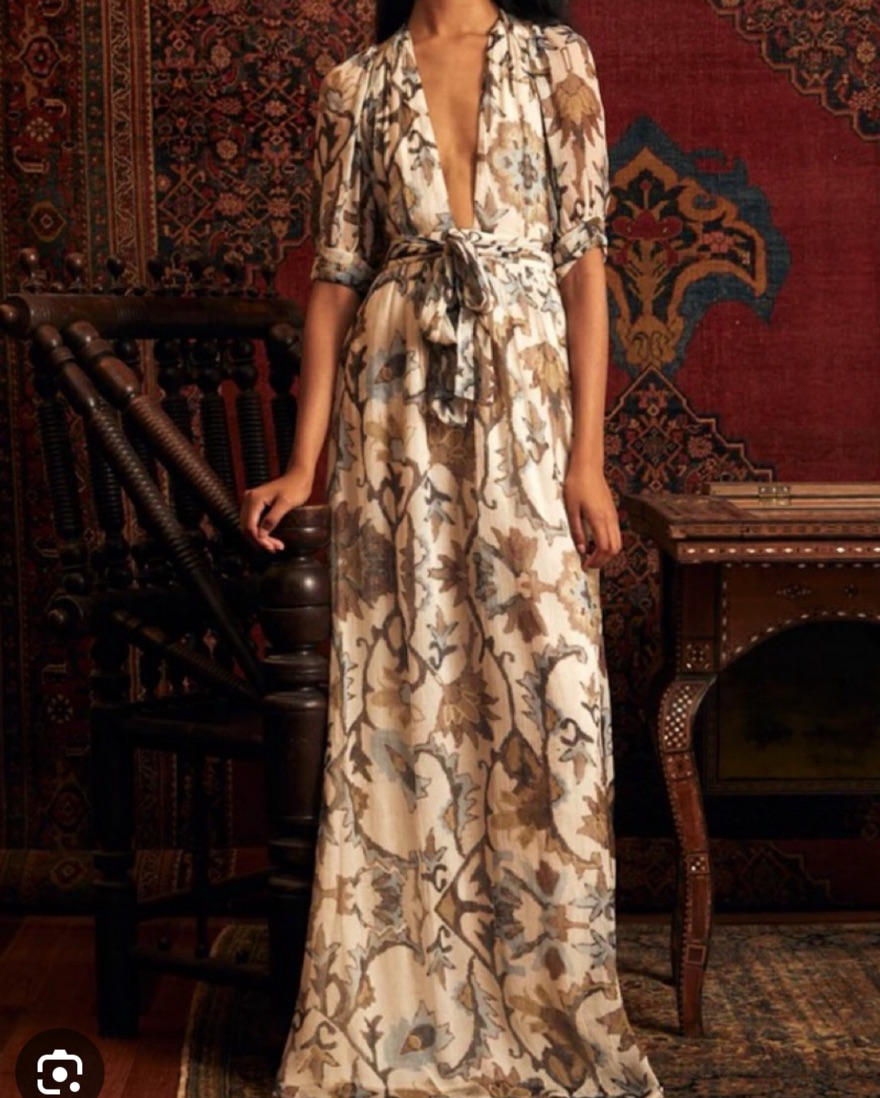 Hannah Artwear dress with plunging neckline and open back in size small!