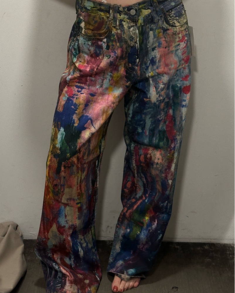 Acne Studios Baggy Paint Splatter Jeans by Acne Studios - Pickle